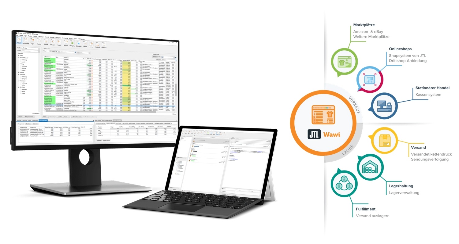 Steuern Sie alle Ihre Vertriebskanäle mit der JTL Warenwirtschaft übersichtlich und effizient. Das ERP-System sowie die modularen Software-Lösungen innerhalb der Warenwirtschaft sind die Grundpfeiler Ihres E-Commerce Erfolgs.